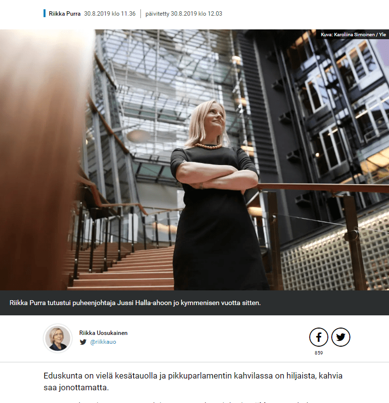 Perussuomalaisista uutisoidessa kaikki vaivalla saavutetut positiot – kuten se, että naisia ei tavata vähätellä esittämällä, että heidän takanaan olevia miehiä on kiittäminen heidän onnistumisistaan – unohtuvat. On aivan hyväksyttyä väittää henkilökuvassa, että naishenkilö on paitsi vähän seko myös herran armosta asemassaan.