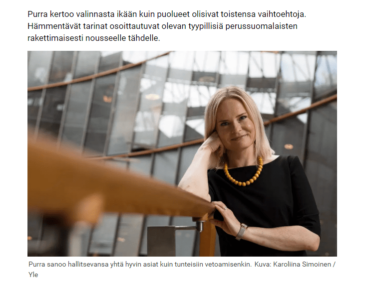 Kun Yle ilmoittaa perussuomalaiselle naispoliitikolle haluavansa tehdä hänestä henkilökuvan, ei kannata hurrata riemusta. On hyvin todennäköistä, että perussuomalaisesta naispoliitikosta tehtävä juttu ei ole iloista human interest -kamaa, jossa poliitikko saisi kertoa itsestään, elämästään ja mielenkiinnon kohteistaan. Riippuu toki toimittajasta.
