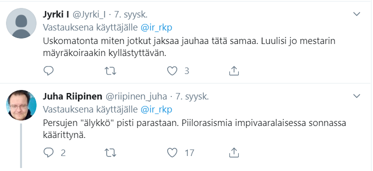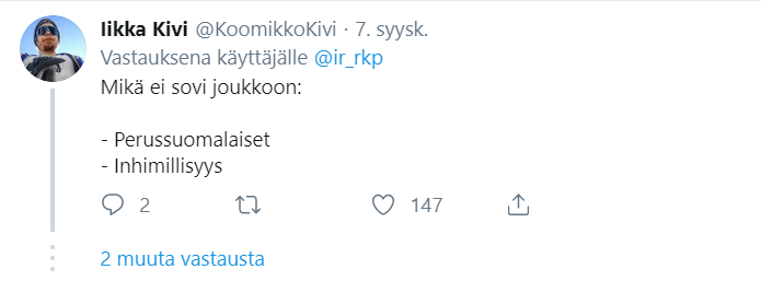 En saata olla ihmettelemättä, eivätkö ne somen vääräleuat tunnista? Vai onko ylpeys vain niin kova, että vaikka osuisi vitsaus omalle kohdalle, ei uskalleta myöntää perussuomalaisten olleen oikeassa?